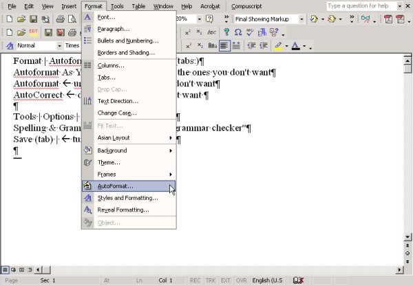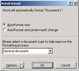 1. On the menu bar, select Format | Autoformat | Options (button)