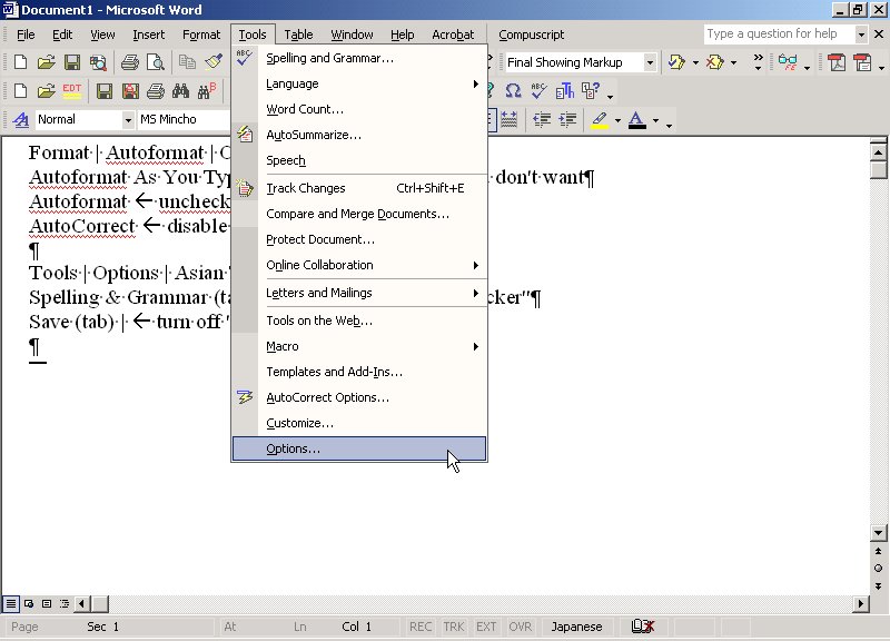 ETA: I'd do it myself (and egads, how I've tried), but I have no idea what autofuckupformat is called in Japanese, and thus no idea what option I'm trying to unselect in the first place.